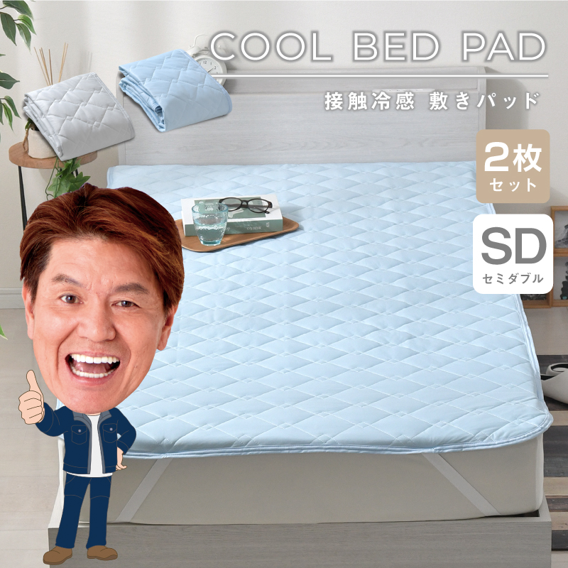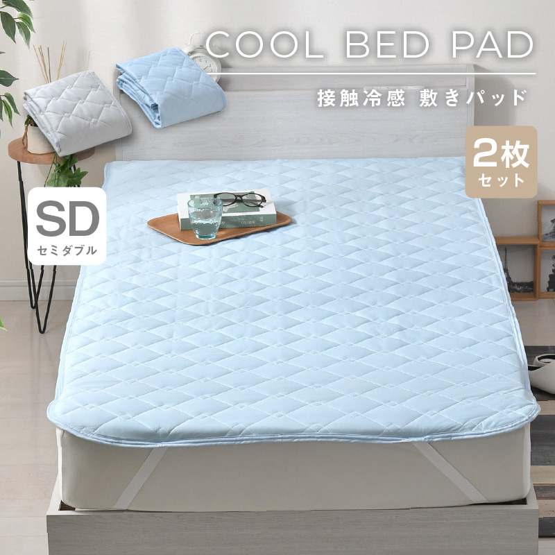 【同色2枚セット】冷感 敷きパッド セミダブルサイズ(約120×205cm)