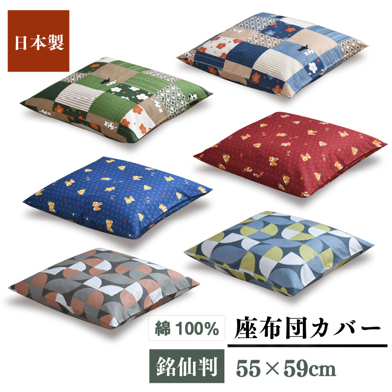【ネコポス配送商品】日本製 綿100% 和柄 座布団カバー