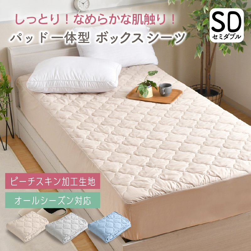 【ピーチスキン加工生地 パッド一体型ボックスシーツ】セミダブルサイズ 約120×200×30cm