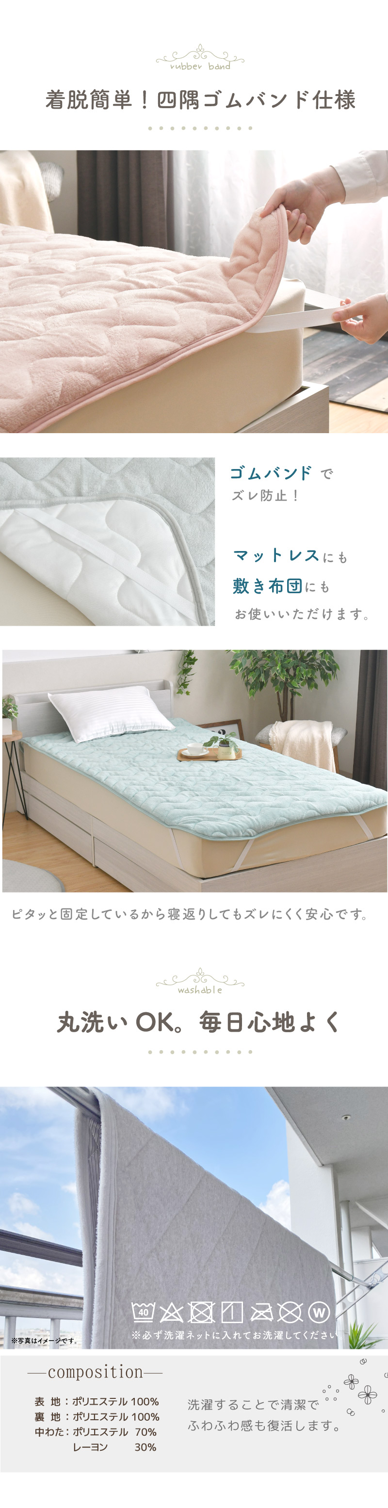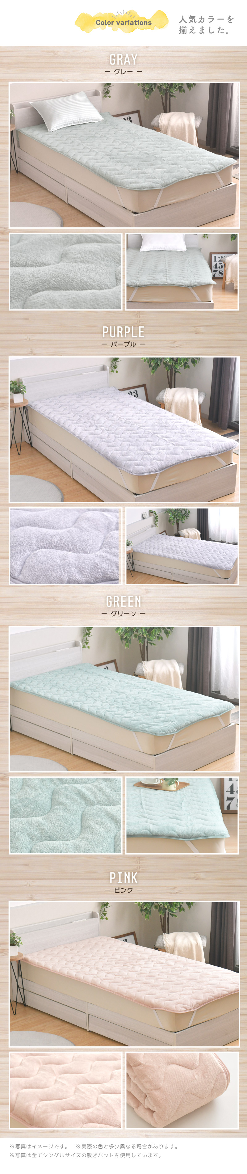 ※写真は全てシングルサイズの敷きパットを使用しています。