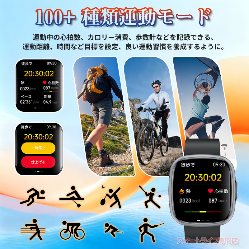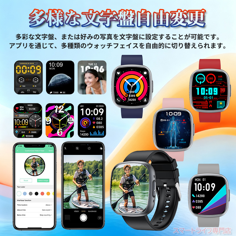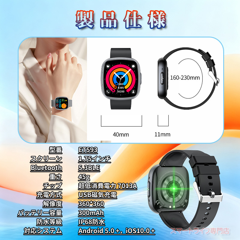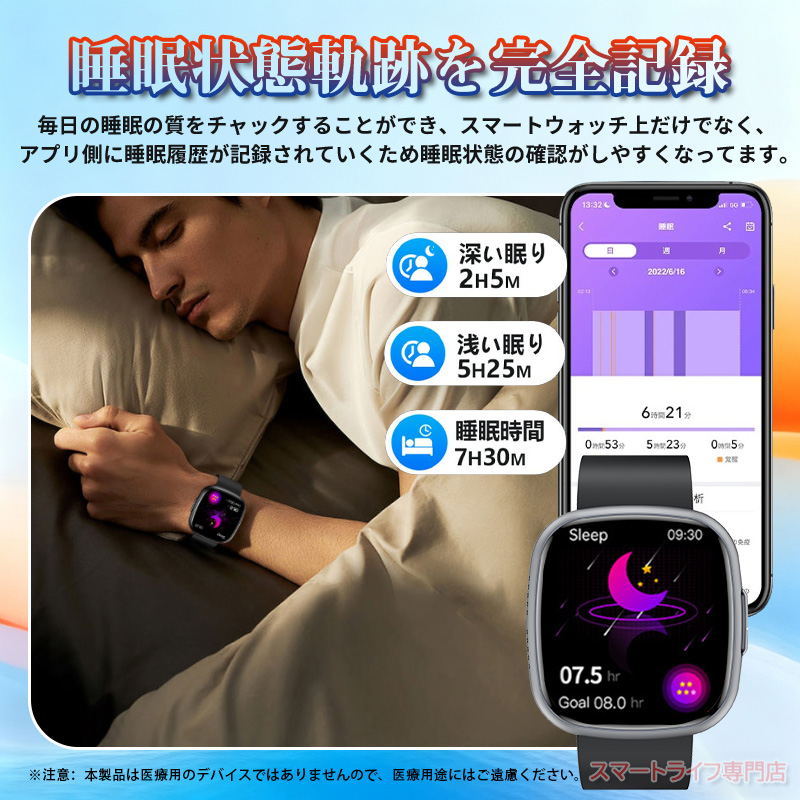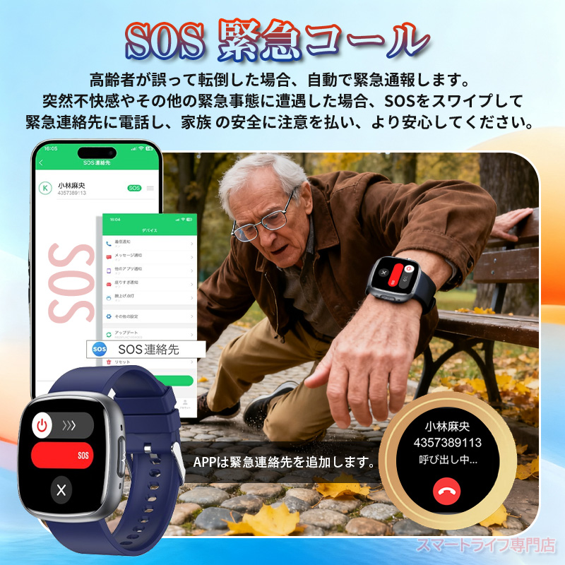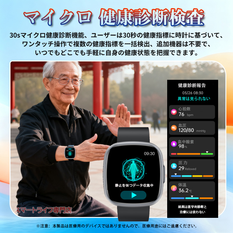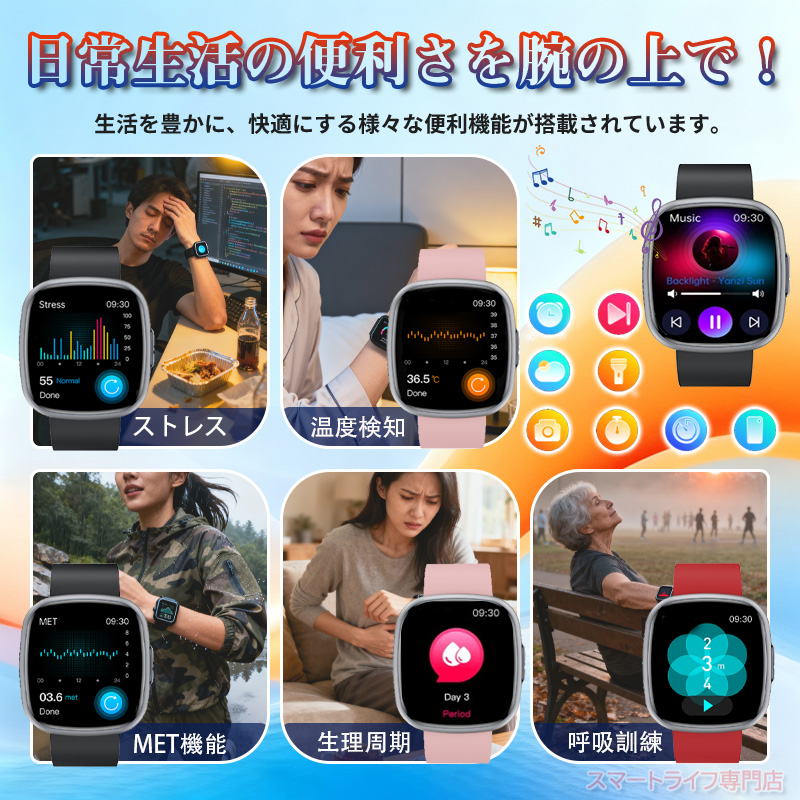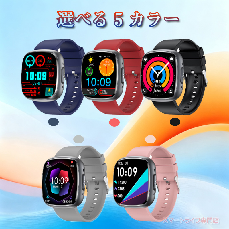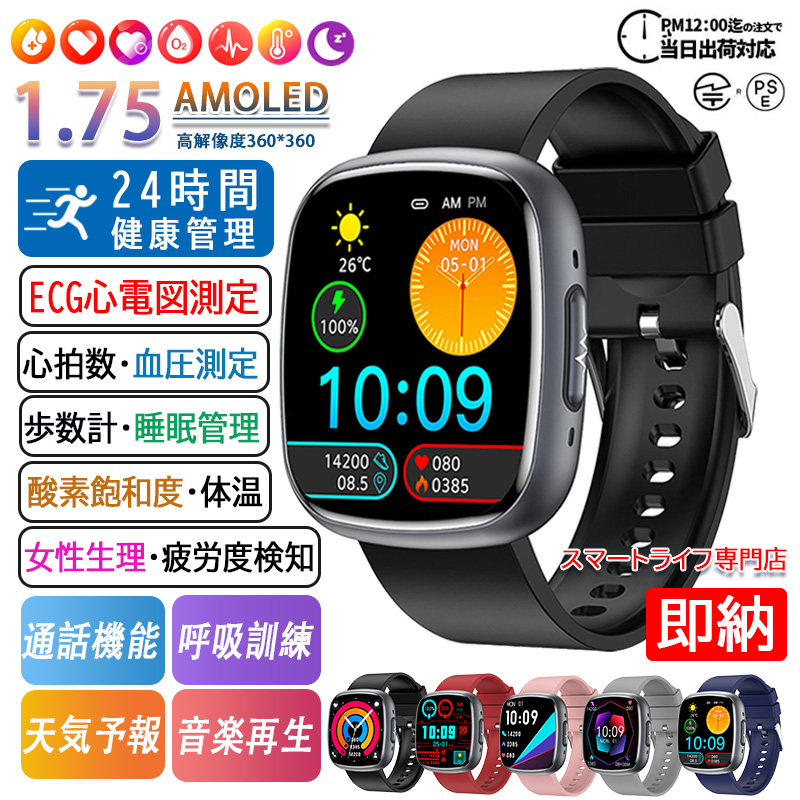 スマートウォッチ 日本製センサー 糖値 血圧測定 心電図 通話機能 心拍数 血中酸素 体温 睡眠 健康管理 着信通知 SOS機能 音楽・カメラ制御 天気予報 生理管理