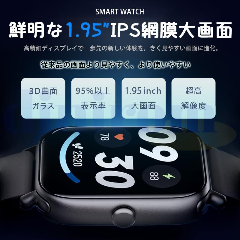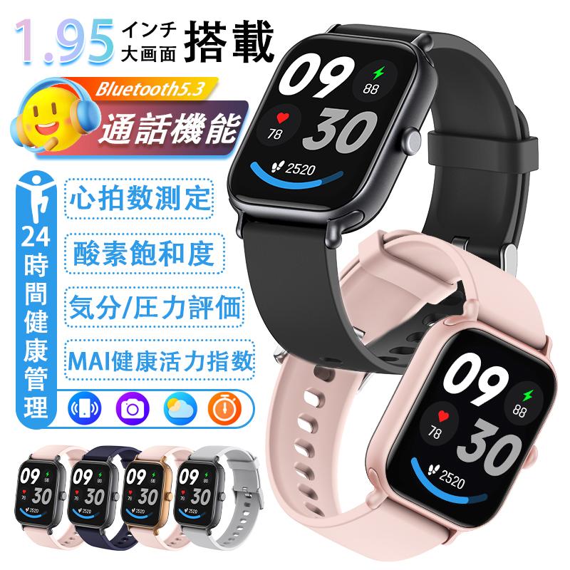 スマートウォッチ 日本製センサー 1.95インチ 通話 通知機能 血糖分析 心拍数 血圧値測定 24時間健康管理 血中酸素 睡眠管理 心拍数 MAI値 歩数計 活動量計