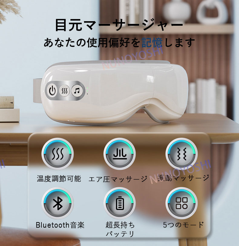 特殊機能:アイウォーマー, 音楽流し, 目元エステ, エア振動×空気圧xグラフェン加熱バッグ, 充電式 アイマスク
