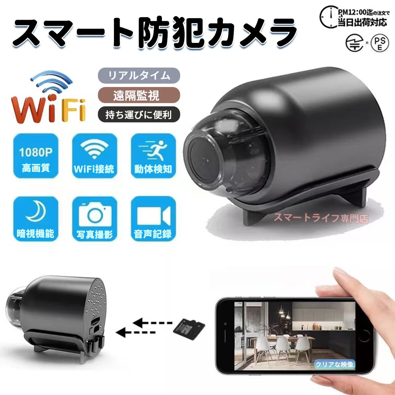 防犯カメラ 小型 高画質 リアルタイム 遠隔確認 カメラ 動体検知 広角監視 音声記録 長時間スマート防犯カメラ WiFi MINI コンパクト 超小型 ビデオ撮影