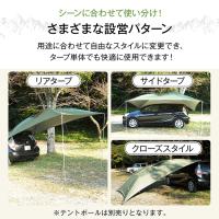 カーサイドタープ カーサイドテント 2~4人用 吸盤フック 簡単設営 収納袋付き 高耐水加工 ポリエステル 大雨 長時間降雨 キャンプ 車中泊 ビーチ 災害時 丈夫
