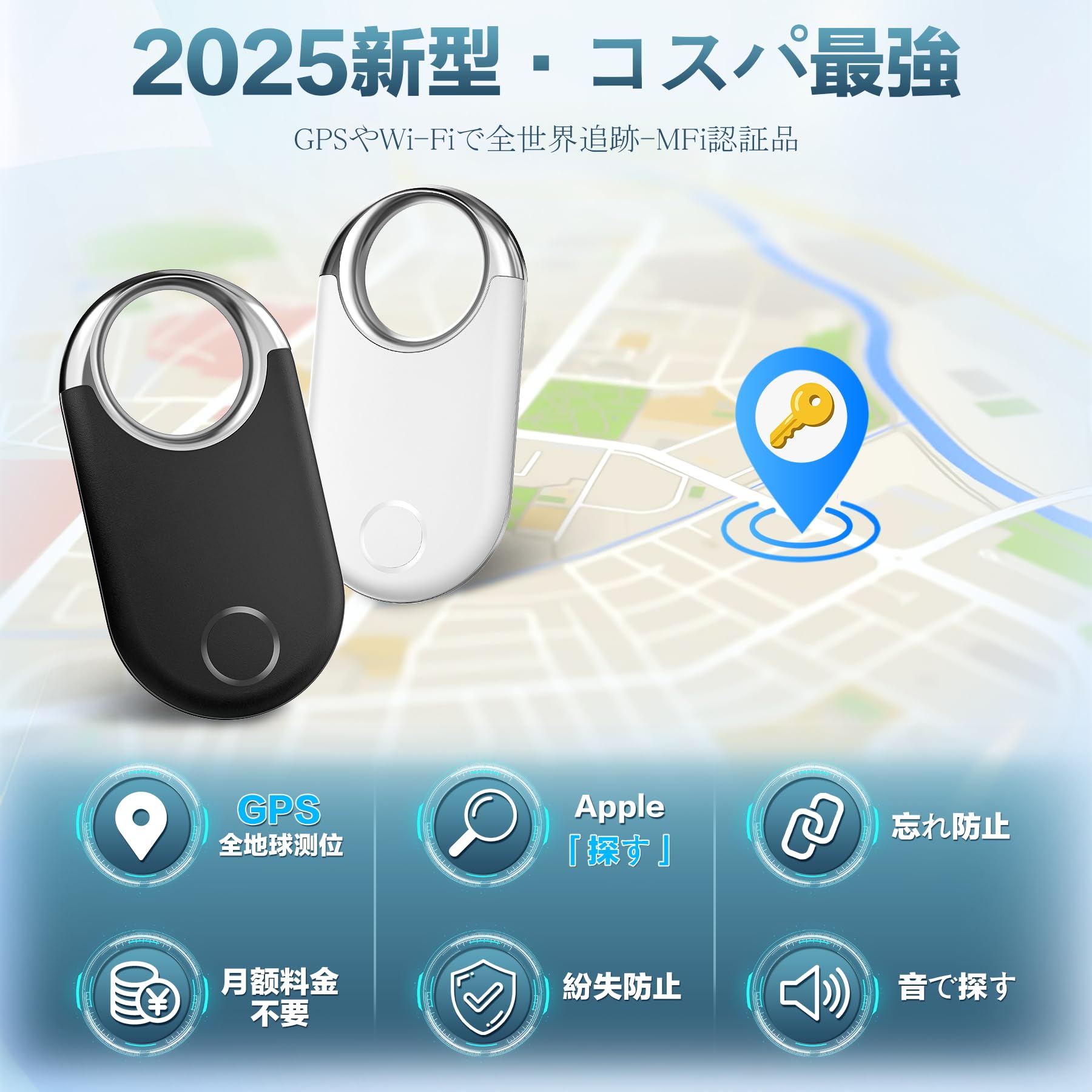 Apple公式認証「MFi取得品」だから、iPhone・iPad・Macと完全互換。iOS専用の「探す」ネットワークを活用し、月額料金ゼロで世界中どこでも追跡可能です。 音を鳴らして紛失防止、地図上でリアルタイム位置情報を確認。スーツケースやリュック、鍵、財布はもちろん、お子様や高齢者、ペットの見守りにも最適です。小さくてスマート、あなたの毎日をしっかりサポート。