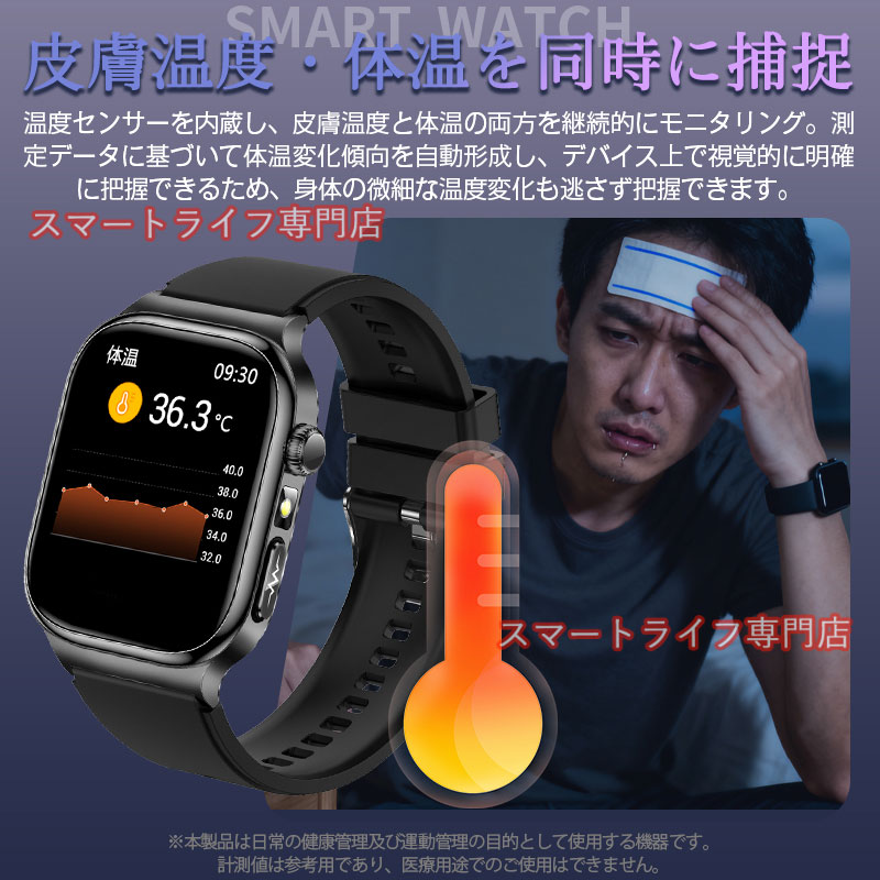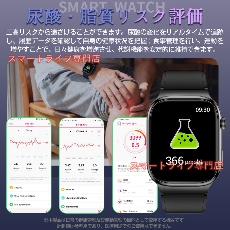 【自動モニタリング】:尿酸、脂質、心拍数、血中酸素、血圧、体温、睡眠モニタリング
