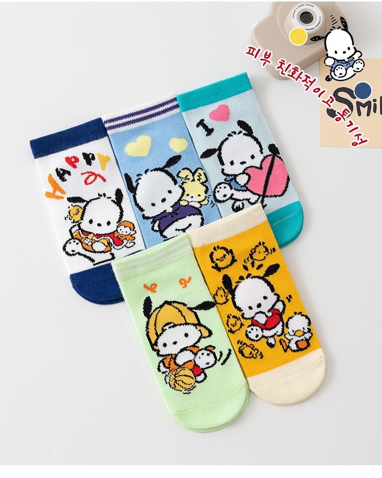 ソックス 子供 クロミ ポチャッコ マイメロ 夏 キッズ 靴下 5足セット クール丈 通気 メッシュ 綿製 女の子 可愛い キャラクター 柔らかい 子供の日 ギフト