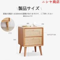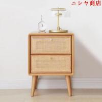 全無垢材ベッドサイドテーブル ナイトテーブル サイドテーブル ラタン純無垢材北欧モダンミニマリスト収納棚スモールオフィス寝室 引き出し付きオーク材 ナチュ