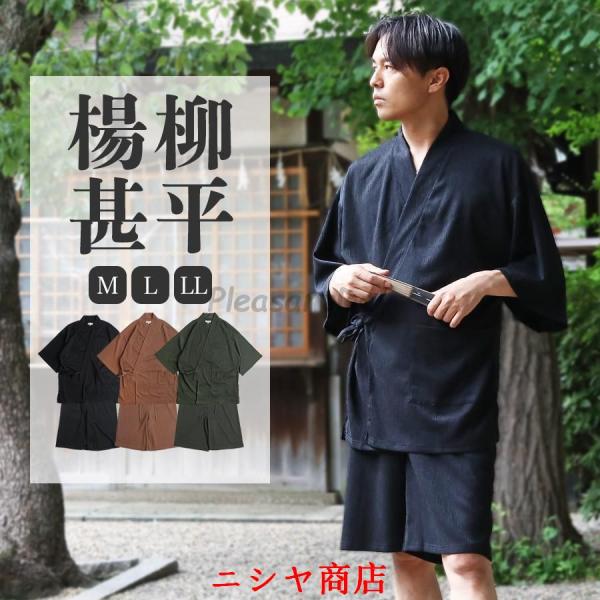 甚平 メンズ じんべい 父の日 敬老の日 楊柳 涼しい おしゃれ 夏 部屋着 ルームウェア セットアップ 夏祭り 花火大会 プレゼント