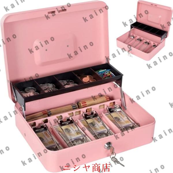 手提げ金庫 金庫 家庭用 小型 持ち運び 手提げ 鍵付き Lサイズ 手提げ金庫 A4 ミニ 防犯 簡易 隠し 金庫 30x24x9cm 貴重品保管 スチール製 収納ボックス (ピンク