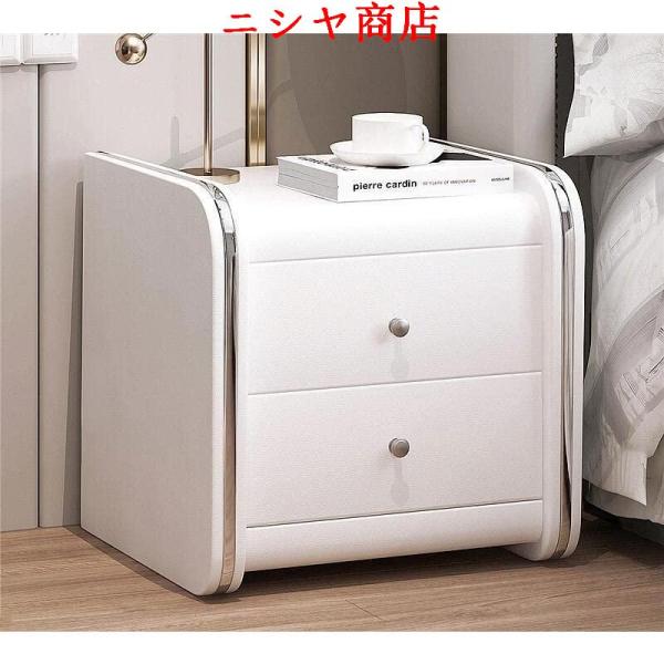 ベッドサイドテーブル 引き出し ナイトテーブル おしゃれ レザー ソファサイドテーブル クローゼットオーガナイザー 寝室のモダンな白いナイトスタンド コーヒー