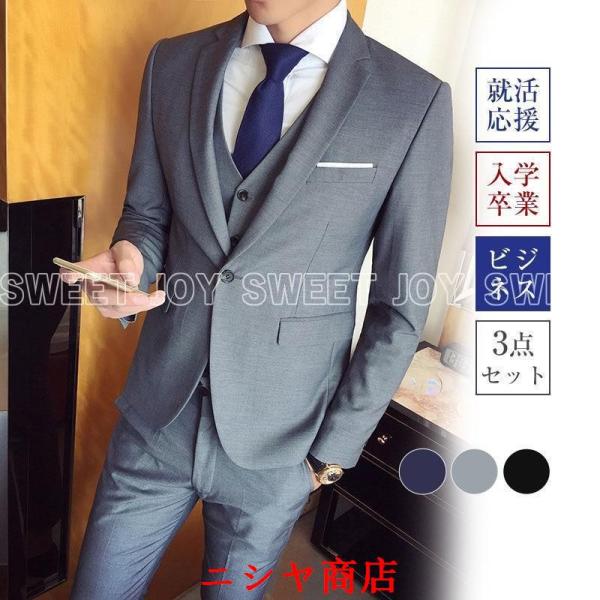 スーツ メンズ セットアップ 3点セット スリム 着痩せ ビジネス フォーマル ベスト 秋冬 春 3シーズン 微ストレッチ 通勤 紳士服 上下
