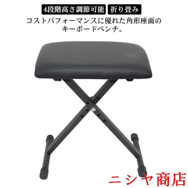 キーボードチェア 折りたたみ 高さ調節 4段階 キーボード ピアノ 椅子 クッション キーボードベンチ キーボードイス チェア 背もたれなし スリム