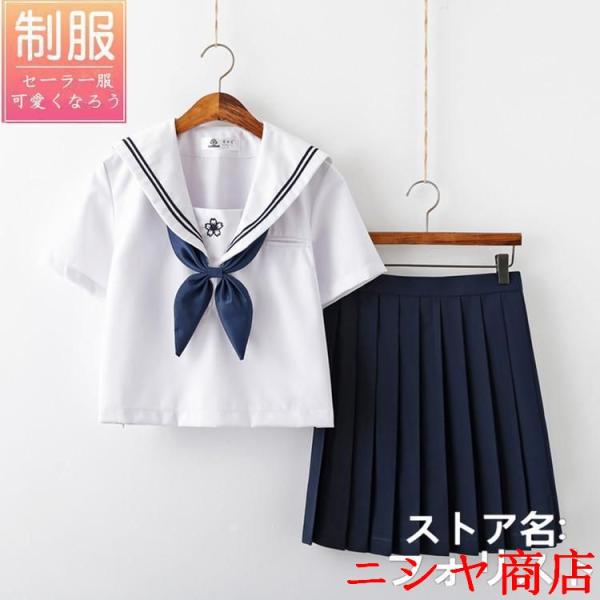 セーラー服 半袖 長袖 ブラウス プリーツスカート 丈長め 膝丈 正統派 女子制服 単品 セットアップ 女子高校生 JK制服 蝶ネクタイ付き 本格制服 関西襟 紺