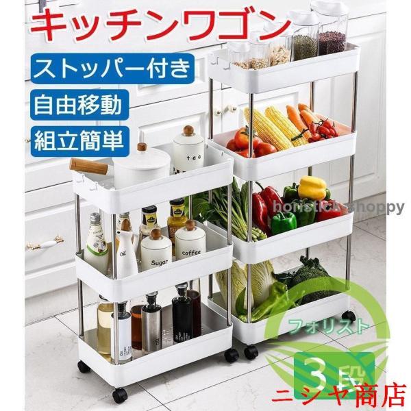キッチンワゴン キャスター付き 3段 収納カート ローリングラック おしゃれ 隙間収納 スチールワゴン 台所 整理棚 書類 食品 ホワイト スリム