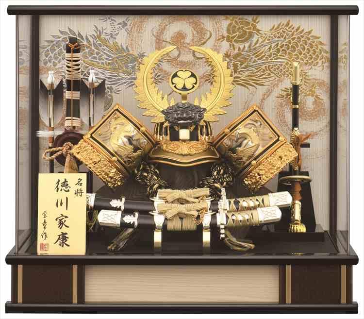 パノラマケース五月人形 コンパクト 徳川家康 兜ケース飾り 兜飾り 宝童作 金徳川兜 12号 アクリルケースYN0828GKCkabuto-49