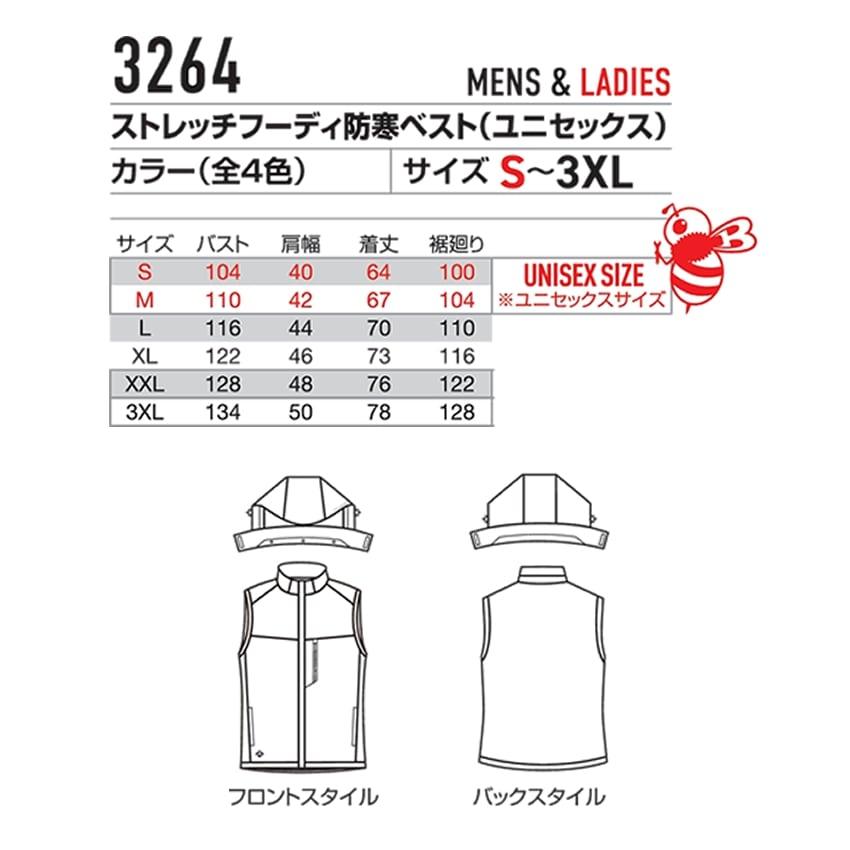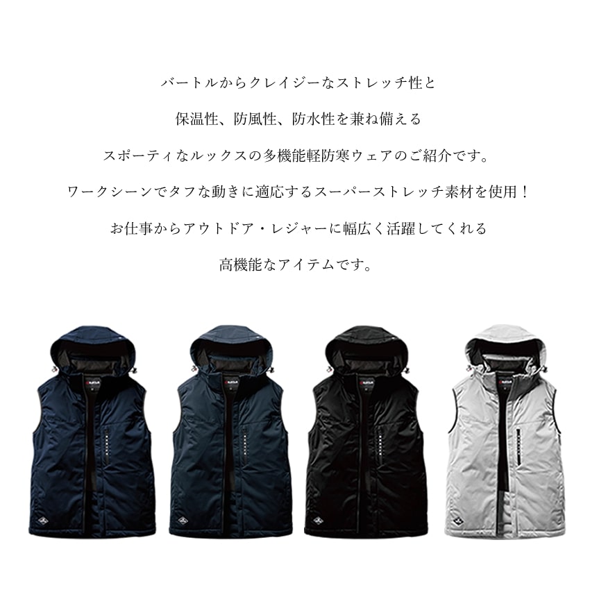 バートル【2025秋冬NEWモデル】ストレッチフーディ防寒ベスト 保温性 ストレッチ性 防水性 BURTLE 3264