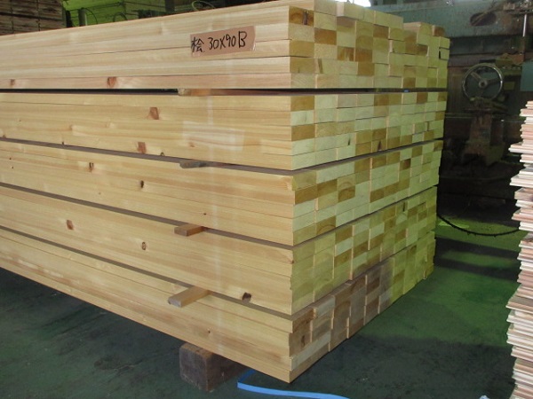 樹齢70年生の長州ヒノキの丸太を人工乾燥器にて60℃の中温で約7日間乾燥後、表記のサイズに4面プレーナ加工した商品です。