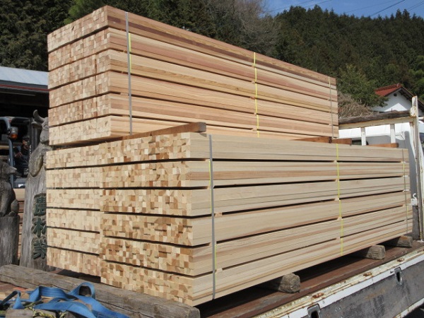 ■大きな節が混ざると折れやすいので基本的には小節の盤から製材しております。無節も多いので家具の材料にも最適です。