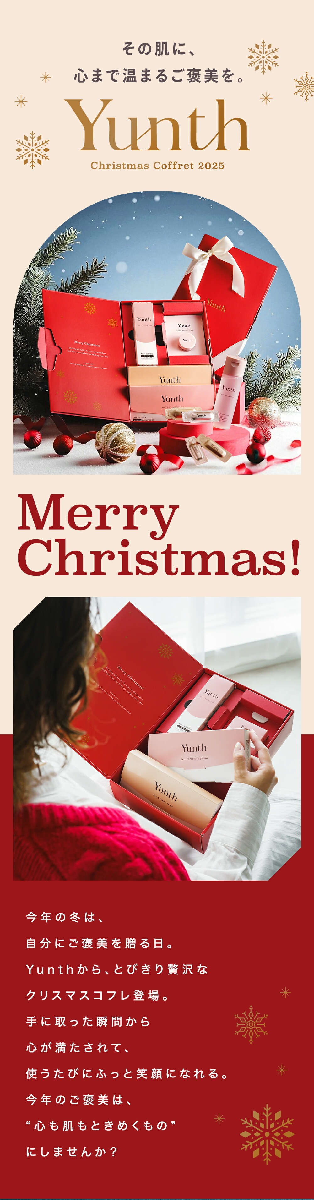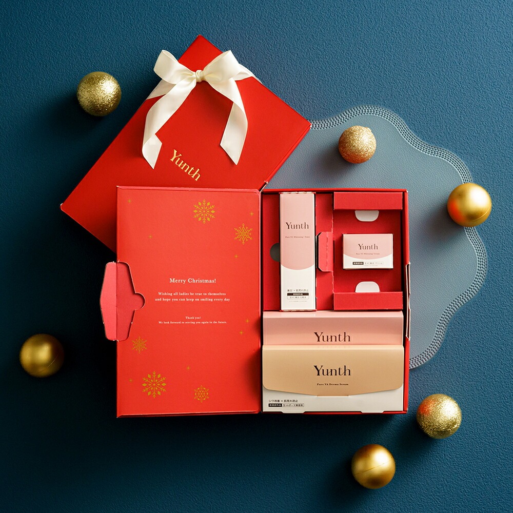 人気スキンケアブランドYunthが贈るクリスマス限定ギフトセット。女性、女友達、母、妻へのおすすめ美ギフトとして、特別な冬の美しさをプレゼント。