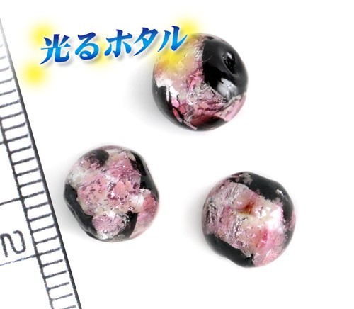純銀箔入り【蓄光ホタル8mm】暗闇で光る蛍 ピンク お得10個 2穴 沖縄ホタルガラス ホタル石 蛍石 琉球ホタル 蜻蛉玉 トンボ玉 ビーズ 夜光 蓄光