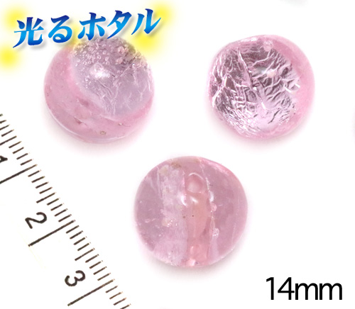 純銀箔入り【蓄光ホタル14mm】暗闇で光る蛍 クリアピンク 1個 サクラピンク 桜ピンク 2穴 蜻蛉玉 トンボ玉 ビーズ