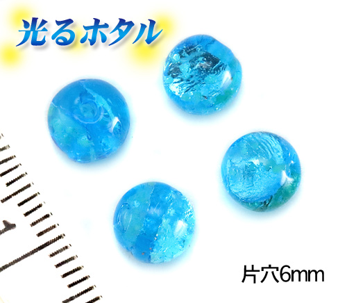 純銀箔入り 【蓄光ホタル片穴6mm】暗闇で光る蛍 6mm玉片穴 1個 マリンブルー 沖縄ホタルガラス ホタル石 蛍石 琉球ホタル 蜻蛉玉 トンボ玉 ビーズ 夜光 蓄光