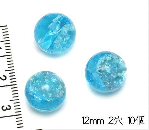 純銀箔入り【蓄光ホタル12mm】暗闇で光る蛍 アクアブルー お得10個 ライトブルー 2穴 沖縄ホタルガラス ホタル石 蛍石 琉球ホタル 蜻蛉玉 トンボ玉 夜光