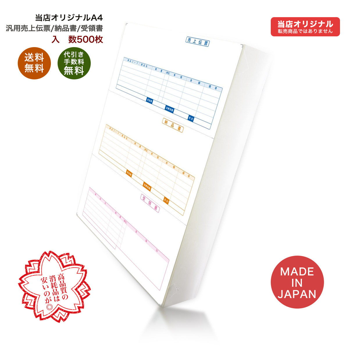 早期配送 334301汎用売上伝票 500枚 品番: INO-4301 送料無料 代引き手数料無料 安心の日本製 オリジナル 伝票 業務用