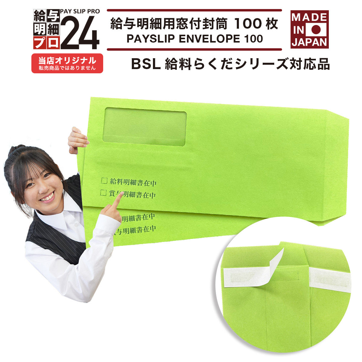 早期配送 《グリーン》BSL給料らくだシリーズ対応品 給与明細書用窓付封筒 100枚 BSL 給料らくだシリーズ