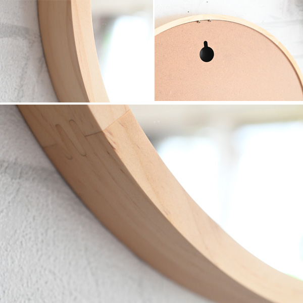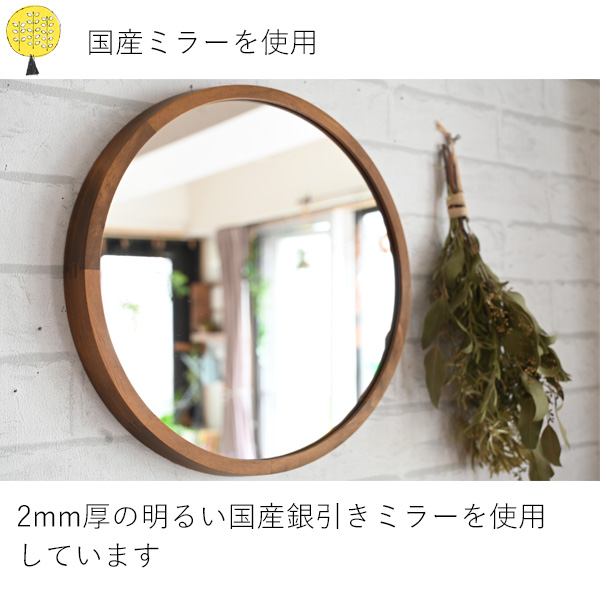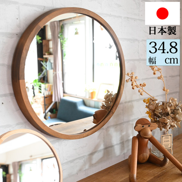鏡 壁掛け ミラー 丸形 円形 ウォールミラー おしゃれ 木製 ナチュラル 北欧風 賃貸 大きい 大型 インテリア 日本製 『 木枠ミラー acoustic L 直径348φ 』