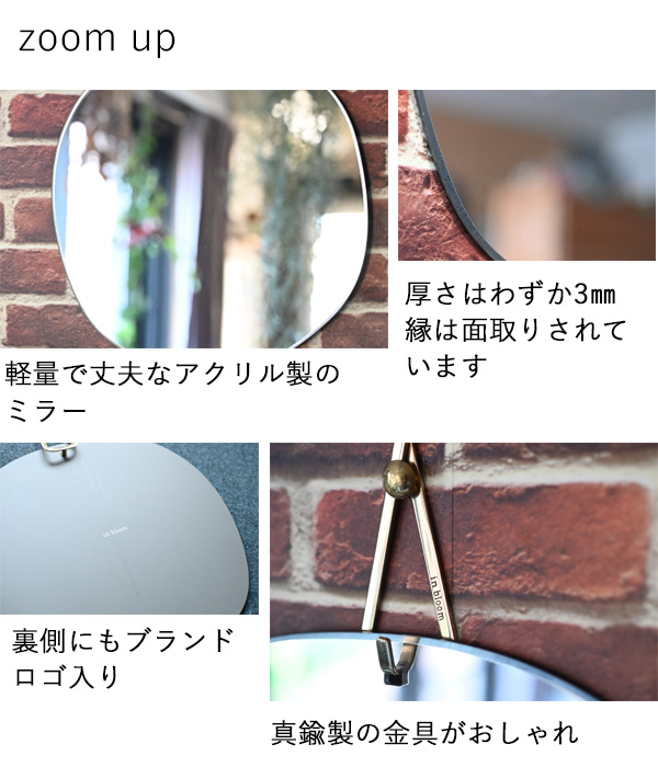 『インブルーム ブラスウォールミラーS』鏡 壁掛け ミラー 簡単に割れない ウォールミラー 軽い 軽量 賃貸 取り付け 丸い おしゃれ 薄い 薄型