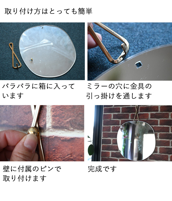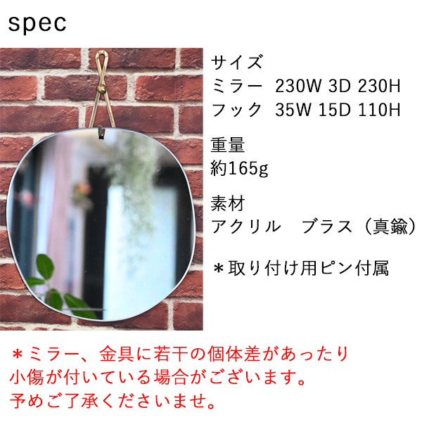 壁掛け 真鍮 鏡 かがみ アクリル ミラー 軽量 画鋲 ピン