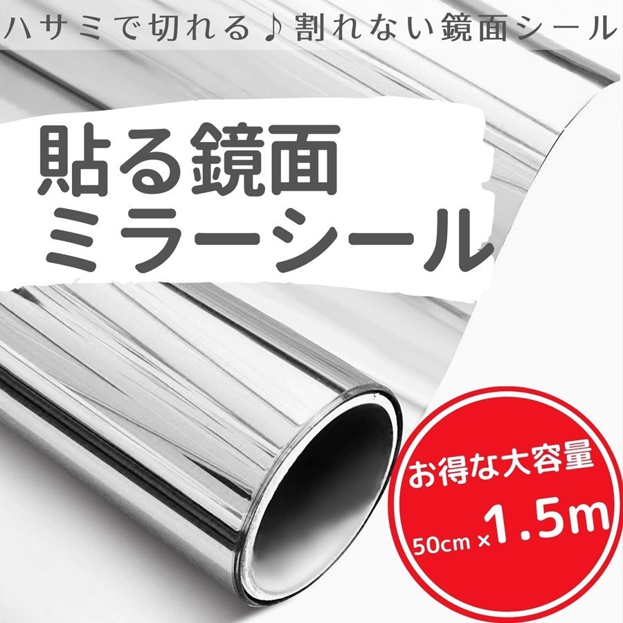 【1.5m】ミラーシール ミラーシート 割れない 貼る鏡 ウォールステッカー 割れない鏡面 DIY 鏡 壁紙 反射板 レフ版 幅50cm×長さ1.5m Isdy RSL