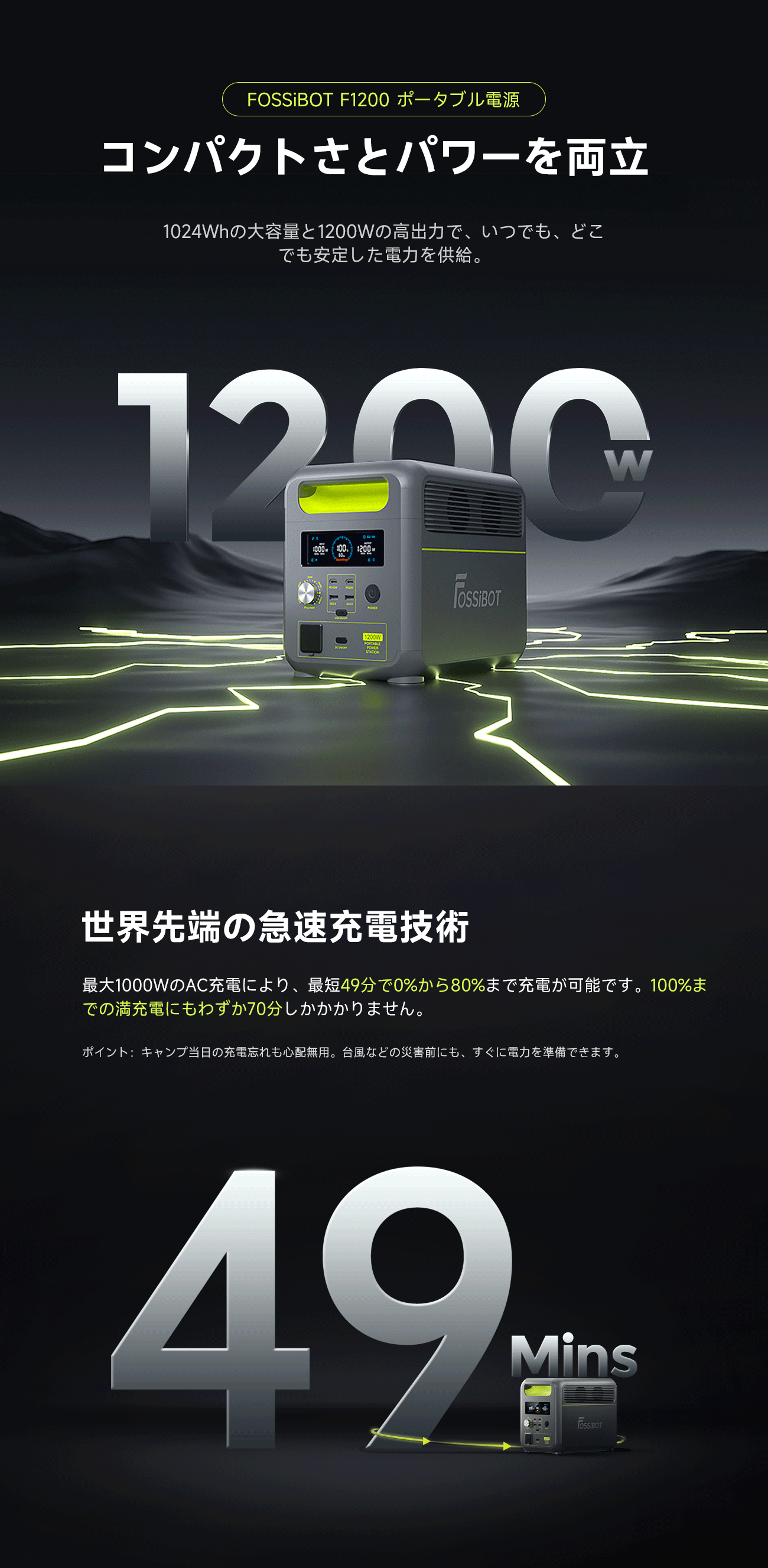 ポータブル電源 ソーラーパネル セット 大容量 FOSSiBOT F1200 1024Wh 家庭用 バッテリー 急速充電 リン酸鉄 車中泊 キャンプ 入力電力調整 停電対策