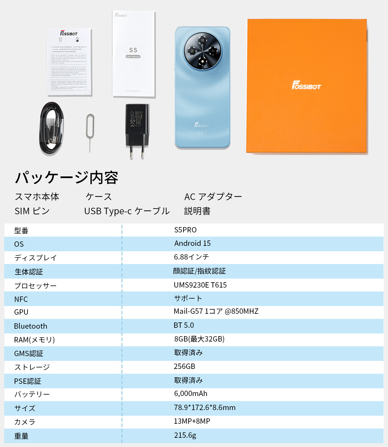 【2026年新発売!】FOSSiBOT S5 SIMフリースマホ 本体 Android 15 16GB+128GB 1TB拡張可能 オクタコアプロセッサ 6.88インチHD+ 6000mAh GeminiAI 薄型 軽量