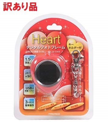 (訳あり)アイティプロテック デジタルフォトフレーム 1.5インチ ハート型キーホルダー Ver.レッド IPT-DF15H-R .