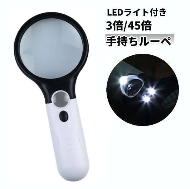 【並行輸入品】手持ちルーペ 虫眼鏡 虫めがね ダブルレンズ 3倍 45倍 LEDライト付き 拡大鏡 老眼 読書 ._