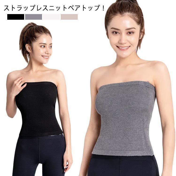 ベアトップチューブトップリブニットストラップレスストラップなしインナーカップなし無地コットンニット綿肌着肩出しワンピースド
