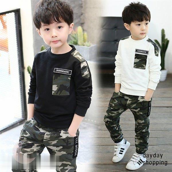 韓国 子供服 迷彩パンツ キッズ ジャージセット 長ズボン 男の子 トレーナー 長袖 tシャツ 子供用 迷彩柄 子ども2点セット 110 120 130 140 150 160 170cm