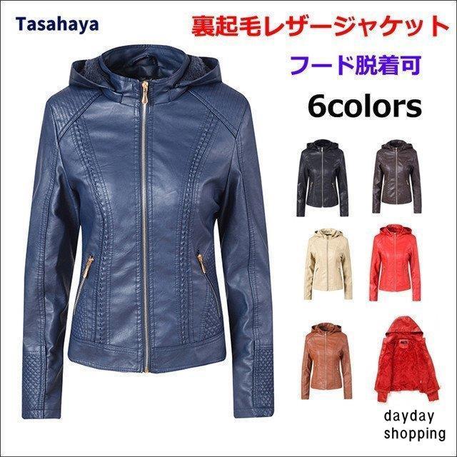 ジャケット ライダースジャケット レディース レザージャケット 裏起毛 革ジャン 女性用 バイクジャケット フード付き 秋 冬 皮ジャケット 防寒