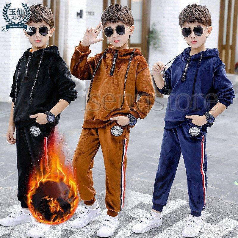 キッズ ジャージ 上下セット 裏起毛 ベロアセットアップ 男の子 ジュニア 子供服 スポーツウェア トレーニングウェア 厚手 もこもこ あったか