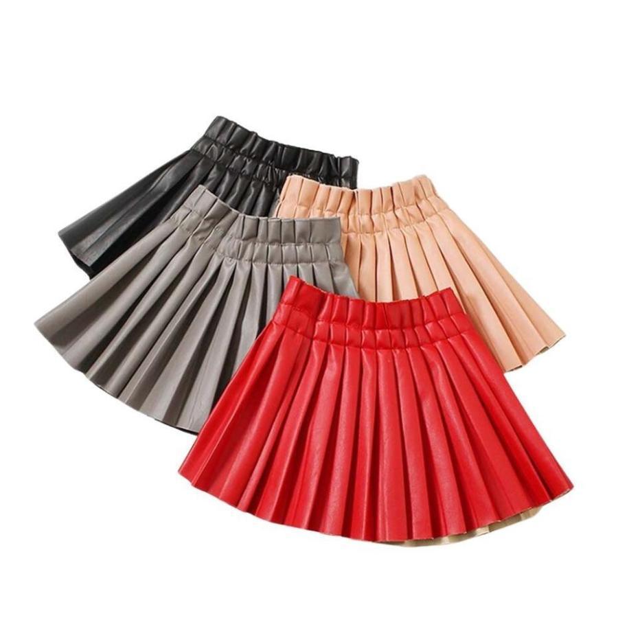 子供服 レザースカート フレアスカート ミニスカート Aラインスカート 女の子 ガールズ プリーツ レザー PU 女の子 子供服 キッズ 秋冬 無地