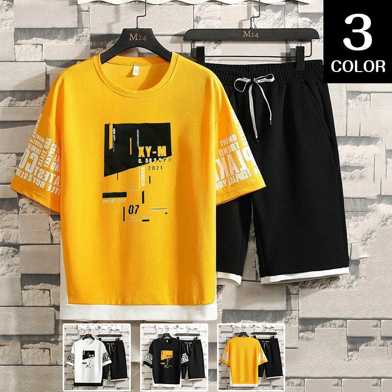 上下セット 吸汗速乾 セットアップ スポーツウェア メンズ Tシャツ ショートパンツ トレーニングウェア ルームウェア 涼しい 半袖 薄手