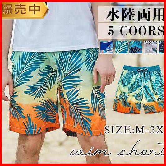 メンズ水着 サーフパンツ 水陸両用 メッシュ裏地 軽量 速乾 海パン 海水パンツ ショートパンツ 無地 花柄 アロハ 夏物 短パン 大きいサイズ