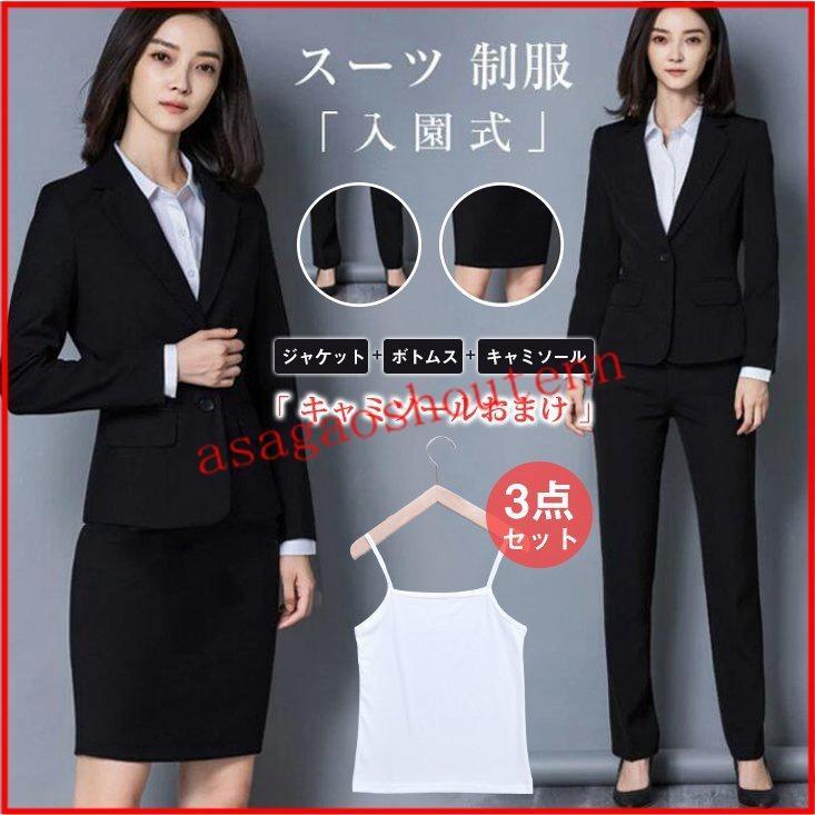 スーツ レディース 3点セット キャミソールおまけ 一つボタン 二つボタン ビジネススーツ リクルートスーツ セット フォーマル オールシーズン オフィス ビジネス 通勤 OL