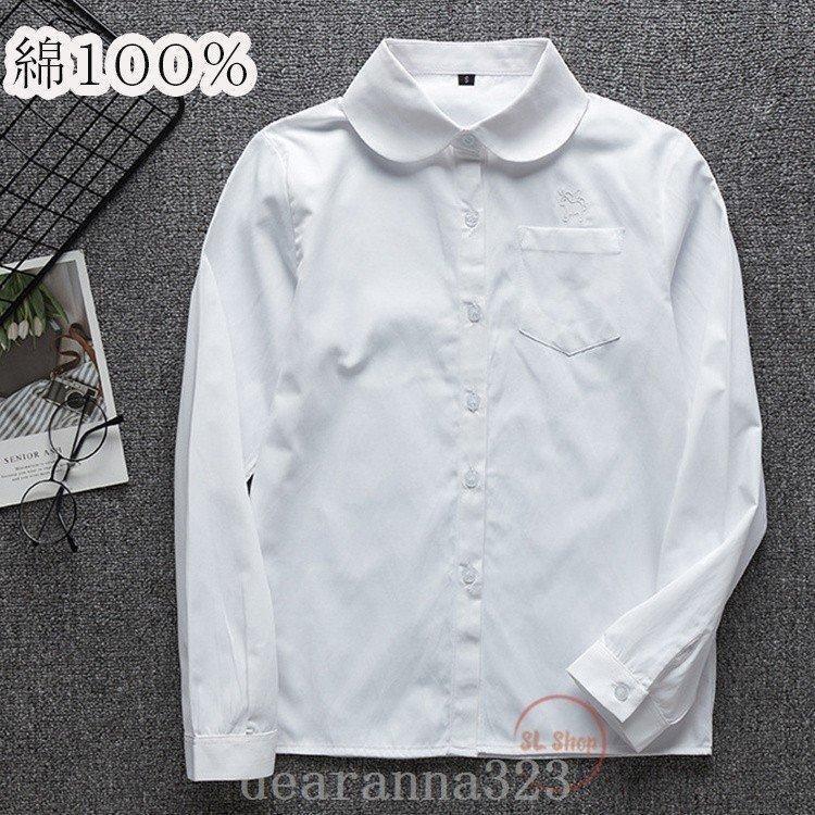 スクールシャツ長袖学生服女子ワイシャツ透け防止形態安定刺繍スクールブラウス丸襟高校生中学2022春夏お中元