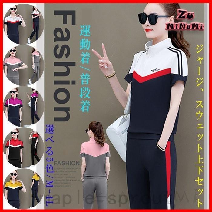 ジャージ セットアップ スウェット レディース 半袖 おしゃれ 夏 上下セット ズボン 運動着 韓国風 大人カジュアル 着やせ 20代 30代 40代