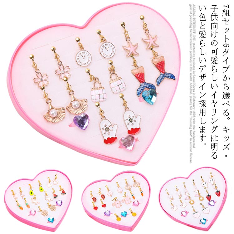 | 【内容】:イヤリング×7ペア、指輪×3、収納ボックス×1、痛み止めのイヤーパッド付き! 7組セット6タイプから選べる。キッズ・子供向けの可愛らしいイヤリングは明るい色と愛らしいデザイン採用します。 耳穴を取る必要のないクリップのデザインです。 高品質の材料で作られた、変色しません。耳に傷つけません、安心に使用できます。 収納ボックス付く、誕生日やクリスマスなど祝い日にプレゼントとして最適です。 学園祭、バザー、景品、マジック、大道芸、宴会、お祝い事、クリスマス、コンサート、催事、クラブイベント、カラオケ、縁日、露天、花火、キャンプ、結婚式二次会などで使えます。 | |